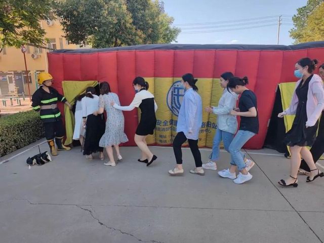 車間、外圍員工逐個(gè)體驗(yàn)應(yīng)急逃生帳篷項(xiàng)目